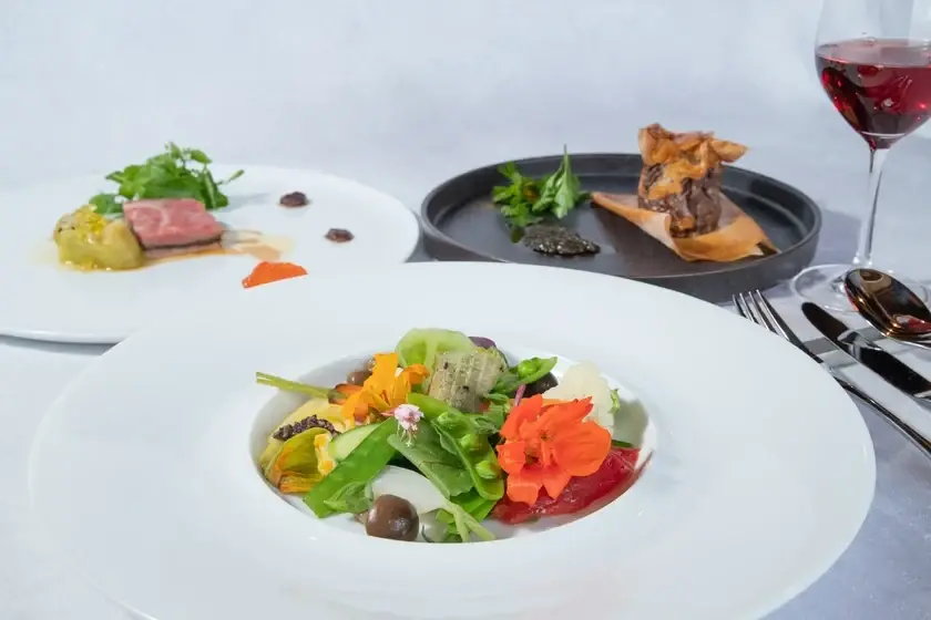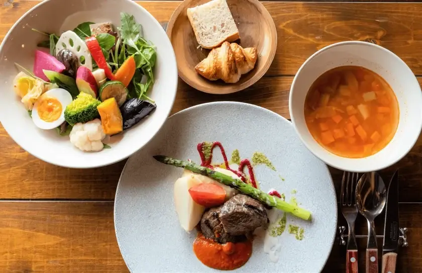 自社農園の採れたて野菜を主役にした洗練の料理で、