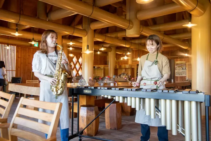 ランチタイムには演奏家による生演奏も楽しめ、